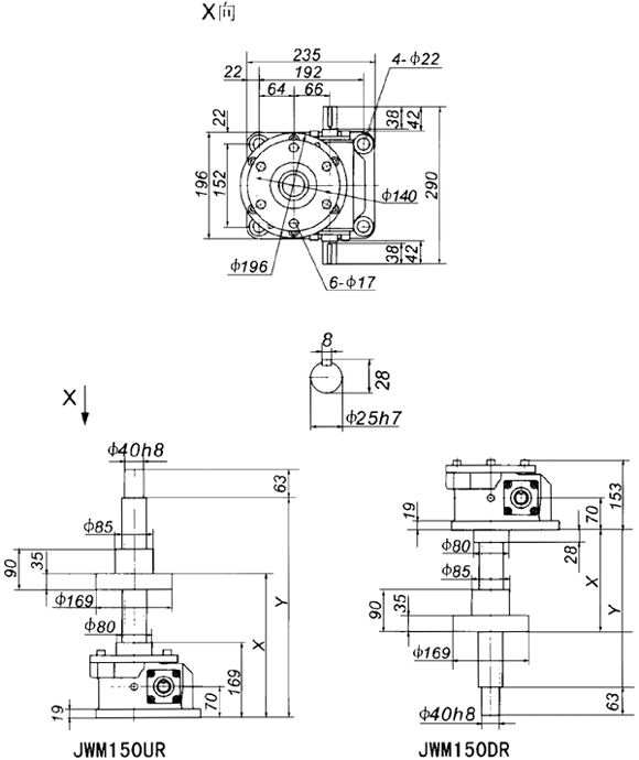 | 當(dāng)前位置:減速機(jī)首頁(yè) >> 產(chǎn)品大全 >> 升降機(jī) >> JW螺旋升降機(jī) >> JWM150絲杠升降機(jī)外形尺寸表 |