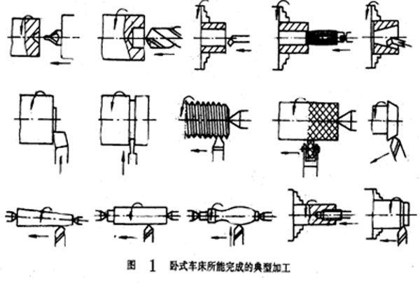 CA6140型臥床的工藝范圍很廣,它適用于加工各種軸類(lèi)、套筒類(lèi)和盤(pán)類(lèi)零件上的回轉(zhuǎn)表面,如車(chē)削內(nèi)外圓柱面、圓錐面、環(huán)槽及成形回轉(zhuǎn)面;車(chē)削端面及各種常用螺紋;還可以進(jìn)行鉆孔、擴(kuò)孔、鉸孔、滾花、攻螺紋和套螺紋等工作圖1