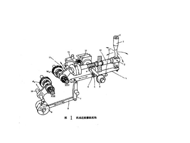 1、 縱向、橫向機(jī)動(dòng)進(jìn)給及快速移動(dòng)是由一個(gè)手柄集中操縱圖1,當(dāng)需要縱向移動(dòng)刀架時(shí),向相應(yīng)方向(向左或向右)扳動(dòng)手柄1.而操縱手柄1只能繞銷1擺動(dòng),于是手柄1下部的開(kāi)口槽就撥動(dòng)軸3軸向移動(dòng)。軸3通過(guò)杠桿及7及扒桿8使鼓形凸輪9轉(zhuǎn)動(dòng),凸輪9的曲線槽迫使撥叉10移動(dòng),從而操縱軸ⅩⅩⅡ上的牙嵌式雙向離合器M8向相應(yīng)方向嚙合。這時(shí)如光杠軸號(hào)ⅩⅩⅡ轉(zhuǎn)動(dòng),運(yùn)動(dòng)傳給軸ⅩⅩ,從而使刀架作縱向機(jī)動(dòng)進(jìn)給;如按下手柄1上端的快速移動(dòng)按鈕s快速電動(dòng)機(jī)起動(dòng),刀架就可向相應(yīng)方向快速移動(dòng),直到松開(kāi)快速移動(dòng)按鈕時(shí)為止。如向前或向后扳動(dòng)操縱手柄1,可通過(guò)軸14使鼓形凸輪13轉(zhuǎn)動(dòng),凸輪13上的曲線槽迫使杠桿12擺動(dòng),杠桿12又通過(guò)拔叉11撥動(dòng)軸ⅩⅩⅡ上的牙嵌式雙向離合器M9向相應(yīng)向方嚙合。這時(shí),如接通光杠或快速電動(dòng)機(jī)就可使橫刀架實(shí)現(xiàn)向前或向后的橫向機(jī)動(dòng)進(jìn)給或快速移動(dòng).操給手柄1處于中間位置時(shí),離合器M8和M9脫開(kāi),這時(shí)機(jī)動(dòng)進(jìn)給及快速移動(dòng)均被斷開(kāi)。