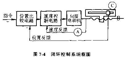閉環(huán)控制系統(tǒng)框圖見圖7-4。圖中A為速度測(cè)量元件,C為位置測(cè)量元件。這類機(jī)床的優(yōu)點(diǎn)是精度高、速度快,但是調(diào)試和維修比較復(fù)雜。