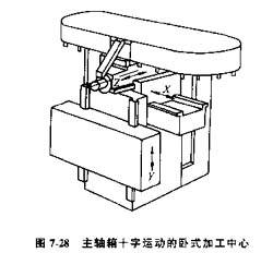 2)主軸箱十字運動,主軸箱作X、Z向運動,工作臺作Y向運動(圖7-28)所示。適用于中小型零件的鏜、銑等多工序加工。
