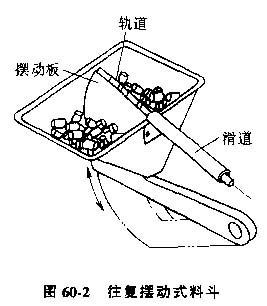 2) 擺動式料斗,圖60-2為一種典型的擺動式料斗結構。擺動板由凸輪或曲柄驅動,零件隨軌道擺動到與滑道一直的威勢時,方位正確的將進入滑道,不正確的回落到料斗。