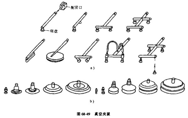 (3)真空夾緊,對零件施加負(fù)壓,使零件貼進在夾爪上。常用形式為用按一定方式排列的一組吸向零件提供真空。