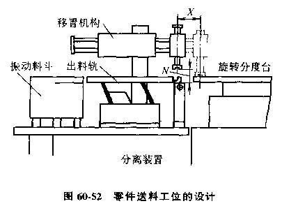 圖60-52為典型的裝配件送料工位設(shè)計,包括: