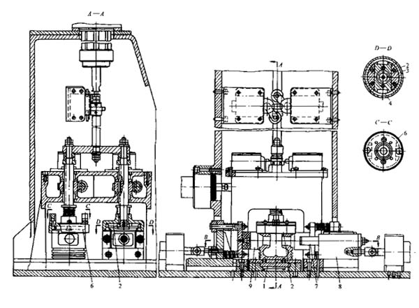 在一個(gè)托架上擰松螺帽、托架向上提升,將裝配件送到定位機(jī)構(gòu)和雙主軸螺帽的扳手處。主軸的旋轉(zhuǎn)使螺帽扳手下降,將連桿頭螺帽套住并擰松6~8,再用專用裝置將連桿蓋分開放下,利用擺桿型輔助運(yùn)輸器,將裝配件從線上轉(zhuǎn)移到有八個(gè)工位的回轉(zhuǎn)式貯料裝置中。待四個(gè)裝好連桿活塞的機(jī)構(gòu)裝在貯料準(zhǔn)固執(zhí)的一段導(dǎo)料板上之后。貯料裝置回轉(zhuǎn),下一段料板移近。貯料裝置裝滿后,裝配機(jī)構(gòu)由裝配單元計(jì)數(shù)繼電器發(fā)出信號(hào),停止送進(jìn)。