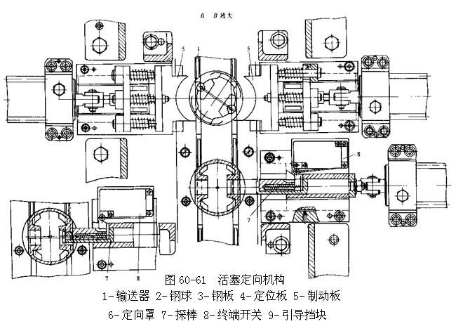 定向裝置的工作方式為:活塞向連桿裝配區(qū)域運(yùn)動(dòng)時(shí),活塞由輸送器1送到預(yù)定向機(jī)構(gòu),罩2向活塞上移動(dòng)。預(yù)定位的目的是,當(dāng)準(zhǔn)備定位的活塞以任意狀態(tài)送來時(shí),要使活塞耳孔中心線與裝配中心線平行。