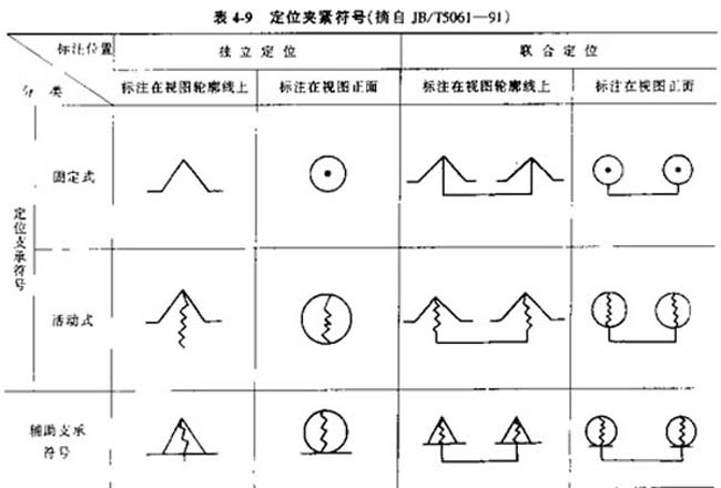 (3)定位與夾緊符號(見表4-9)