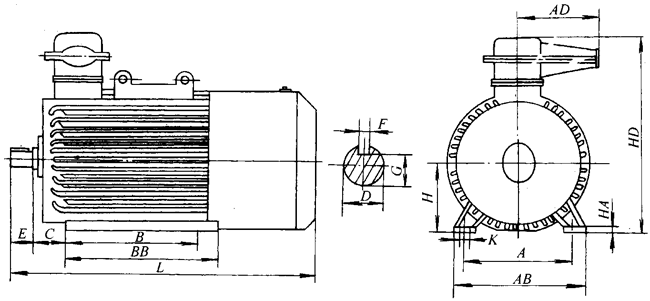 YA系列增安型中型高壓三相異步電動(dòng)機(jī)外形及安裝尺寸(6kV或10kV) |