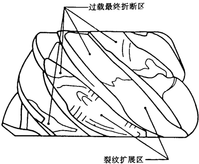 最終斷口面形貌可與過載折斷引起的一種或其他斷口面相對(duì)應(yīng)。