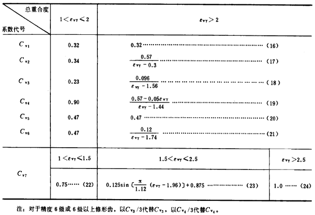 表5動載系數(shù)KV的計算公式