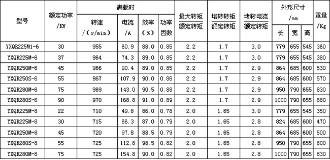 YXQR系列電動機外殼防護等級為IP23。電動機為臥式安裝,借底腳安裝在基礎件上。電動機的轉(zhuǎn)子自成回路,無集電環(huán)、電刷,不需要任何起動設備,但卻具有比傳統(tǒng)繞線式電動機更加優(yōu)越的起動性能。