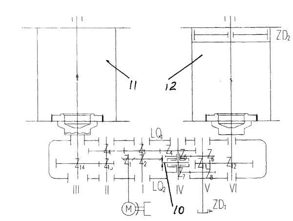 | 起升變幅減速機(jī),有驅(qū)動(dòng)電機(jī)、主起升卷筒、動(dòng)臂變幅卷筒,驅(qū)動(dòng)電機(jī)的輸出齒輪分別與主起升卷筒、動(dòng)臂變幅卷筒之間設(shè)有齒輪變速機(jī)構(gòu),驅(qū)動(dòng)電機(jī)的輸出齒輪與動(dòng)臂變幅卷筒之間的齒輪變速機(jī)構(gòu)還帶有同步器。省去了主起升卷筒、動(dòng)臂變幅卷筒之間單獨(dú)設(shè)置的齒輪傳動(dòng)機(jī)構(gòu)構(gòu)成的補(bǔ)償裝置,利用驅(qū)動(dòng)電機(jī)的輸出齒輪和其分別與主起升卷筒、動(dòng)臂變幅卷筒之間設(shè)置的齒輪變速機(jī)構(gòu),構(gòu)成主起升卷筒與動(dòng)臂變幅卷筒之間的補(bǔ)償機(jī)構(gòu),通過起升變幅減速機(jī)的機(jī)構(gòu)互動(dòng)、聯(lián)動(dòng),進(jìn)行工作動(dòng)作的同時(shí)進(jìn)行了相互的補(bǔ)償。 |
