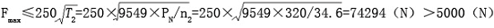 查附錄 B中表 B.2,P3 型規(guī)格 09 公稱傳動比為 45 的減速器的額定功率 PN =320kW>PC