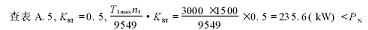 查表 A.1, 載荷均勻的帶式輸送機(jī) KSF =1.25, PC =P2 ·KSF =230 ×1.25 =287.5( kW)