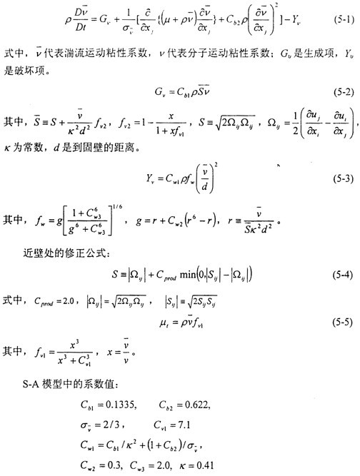 S-A湍流模型是Spalart和Allmaras在1992年提出的一方程湍流模型,具體描述如下: