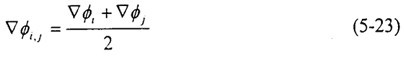 的計算主要是求出控制面上相關(guān)物理量的梯度值。首先由(5-19)式求出各單元內(nèi)物理量ф的梯度值后,界面(i,j)上物理量的梯度值可簡單地由相鄰單元內(nèi)物理量ф的梯度值的算術(shù)平均得出: