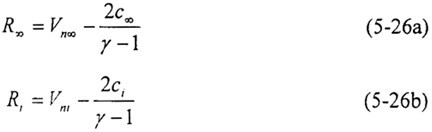 其中無反射邊界條件是根據(jù)特征線的方法來求出邊界上的參數(shù)值。根據(jù)一維完全氣體無粘非定常運動的方程組,在亞聲速的條件下由邊界上的入射波和出射波關(guān)系可以得到兩個Riemann不變量: