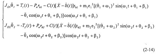 根據(jù)上節(jié)單級齒輪系統(tǒng)的受力分析,可得θ1、θ2兩自由度主從動(dòng)齒輪振動(dòng)微分方程: