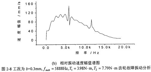 圖2-8中,(a)圖和(b)圖分別是當(dāng)齒輪嚙合頻率仍為5888Hz、但齒側(cè)間隙增加到b=0.3Omm