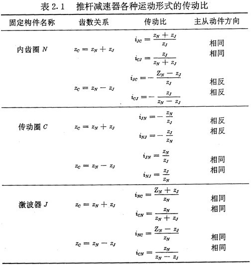 并且ZN應(yīng)是ZJ的整數(shù)倍。當(dāng)式(2.1)取“+ ”號(hào)時(shí),推桿減速器為正向結(jié)構(gòu),取“一”號(hào)時(shí)為反向結(jié)構(gòu)。
