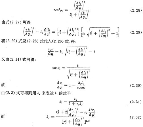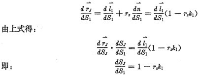下面再推導(dǎo)一下齒廓及其法向等距線的相對(duì)曲率關(guān)系。設(shè)HJ的孤長(zhǎng)參數(shù)為SJ,相對(duì)曲率為kJ,而H1的孤長(zhǎng)參數(shù)為S1,相對(duì)曲率為k1,由微分幾何可得: