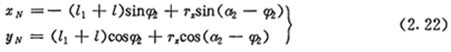 對(duì)于圖2.6所示的反向結(jié)構(gòu),在坐標(biāo)系(0,x N,y N)中,得到內(nèi)齒圈齒廓的方程為: