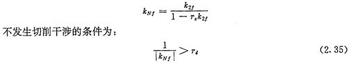 另外,當(dāng)選用半徑為Td的刀具加工內(nèi)齒圈齒廓時(shí),在齒根處可能發(fā)生切削干涉(過(guò)渡切削)。同樣由式(2.24)可計(jì)算出曲線H2在對(duì)應(yīng)于齒根處的相對(duì)曲率kZ 了,齒廓曲線HN在齒根處的相對(duì)曲率kNf為: