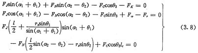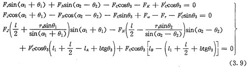 由于考慮了慣性力,所以力Fc 不通過交點(diǎn)Q,lc也是一個(gè)未知數(shù)。若根據(jù)輸入功率確定出FJ,則方程組(3.8)只剩下FN、FC及lc三個(gè)未知數(shù)了。