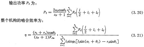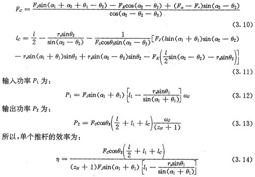 計(jì)算時(shí),先根據(jù)輸入功率P1及轉(zhuǎn)速ωJ由(3.19)式計(jì)算出FJm,然后對每一工作推桿由式(3.17)計(jì)算出FJi,由式(3.10)式及式(3.11)計(jì)算出Fci及lci,最后代入式(3.21)計(jì)算出效率η。