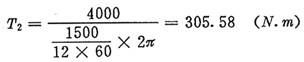 由驅(qū)動功率及輸入轉(zhuǎn)速,可近似(忽略摩擦損失)求得輸出扭矩T2為: