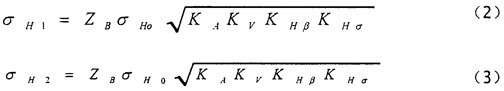 小輪和大輪的計(jì)算接觸應(yīng)力σH1、σH2分別按下述兩式確定: