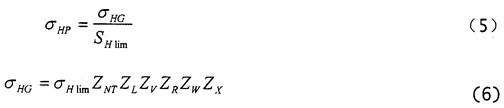 上式中,σHc一一計(jì)算齒輪的接觸極限應(yīng)力,N/mm2
