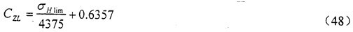 其中,在850N/mm2≤σHlim≤1200N/mm2范圍內(nèi),CZL可由式(50)算得。當(dāng)σHlim<850N/mm2時(shí)以850N/mm2時(shí)以850N/mm2時(shí)以850N/mm2計(jì),當(dāng)σHlim>1200N/mm2計(jì)。