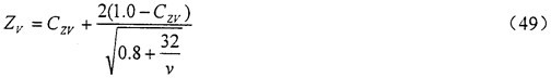 式中:CZR系數(shù)。當(dāng)時(shí)σH1im<850N/mm2時(shí),CZR=0.15;當(dāng)σHlim >1200N/mm2時(shí),CZR=0.08在850N/mm2≤σHlim ≤1200N/mm2范圍內(nèi),CZR可由式(52)算得。