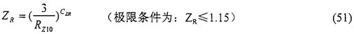 當(dāng)所計(jì)算的齒輪要求持久壽命時(shí),ZR可由式(51)計(jì)算得出,