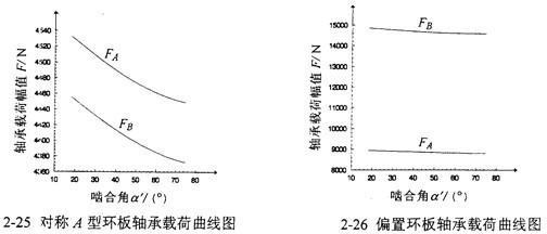 嚙合角a′是三環(huán)減速機內(nèi)嚙合傳動的重要參數(shù),由嚙合角的變化而引起的環(huán)板軸承載荷的變化規(guī)律可以得到某些重要結(jié)論。環(huán)板軸承載荷幅值隨嚙合角變化的曲線如圖2-25、2-26所示。