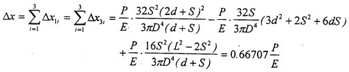 上式方程數(shù)為9個,而方程中未知量的總數(shù)為12個,故存在3個多余未知量。根據(jù)前述的變形協(xié)調(diào)條件,建立3個變形協(xié)調(diào)方程,作為機械受力分析的補充方程,利用高期消元法即可求解。