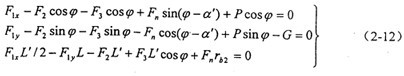 =70°。于是由理論力學(xué)不難求得兩根軸上支承軸承的作用力F