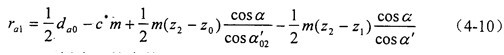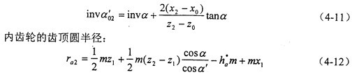 變位系數(shù)的確定是少齒差內(nèi)嚙合傳動設(shè)計(jì)的關(guān)鍵。文獻(xiàn)中所述的內(nèi)、外齒輪都按滾齒加工的計(jì)算公式推導(dǎo)出的變位系數(shù)的迭代公式,與內(nèi)齒輪插齒、外齒輪滾齒的實(shí)際加工情況不一致,雖然能夠保證給定的重合度和齒廓不重迭干涉系數(shù)的要求,但是不能保證標(biāo)準(zhǔn)頂隙,而且一般得出的嚙合角也比較大。本章推導(dǎo)了少齒差內(nèi)嚙合傳動實(shí)際加工情況的變位系數(shù)的迭代公式,解決了上述問題。