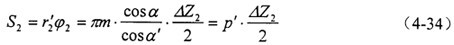 按照迭代過程求得的x1,x2是否滿足設(shè)計(jì)要求,尚需檢驗(yàn)變位外齒輪的齒頂厚系數(shù),驗(yàn)算如下: