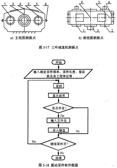 實驗采用壓電式加速度計測量三環(huán)減速機上特征點的振動加速度,并且將原型機與改進型機的情況進行比較;同時對采集的加速度信號進行積分處理,求得特征點的振動速度,計算振動烈度,并且將原型機與改進型機的情況進行比較,從而確定減振效果。