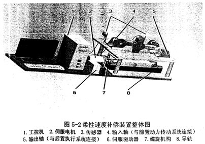 基于圖5-1所示機構,配置伺服驅(qū)動裝置、傳感器以及計算機控制系統(tǒng),獲得該柔性速度補償裝置的原型,如圖5-2所示。