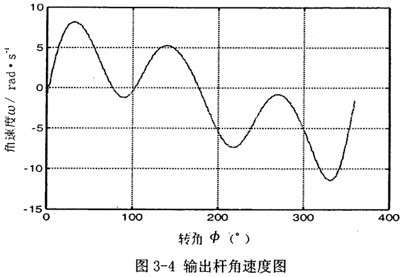 首先由圖3-2可以看到,若機(jī)構(gòu)結(jié)構(gòu)參數(shù)設(shè)計(jì)恰當(dāng),并且調(diào)整中間滑塊3偏移到合適的位置時(shí),可在一定范圍內(nèi),產(chǎn)生一個(gè)反向的速度波適度抵消原速度波動(dòng)。再由圖3-3可知,在未加入第二自由度時(shí),加速度變化值不大,說(shuō)明阻力矩和電機(jī)主動(dòng)力矩不會(huì)受到大的影響,不致導(dǎo)致原機(jī)械系統(tǒng)的各項(xiàng)參數(shù)發(fā)生大的變化。