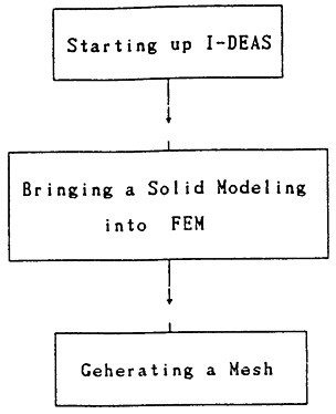 在SUN工作站上使用I—DEAS軟件中的有限元模塊(FE—Modeling—and—Analysis)對(duì)SHQ40箱體進(jìn)行有限元分網(wǎng),其具體操作規(guī)程如圖3-7示。