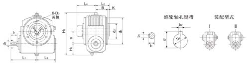 工作條件:減速機(jī)蝸桿軸轉(zhuǎn)數(shù)不超過1500r/min;工作環(huán)境溫度為-40~40℃,當(dāng)工作環(huán)境溫度低于0℃時,啟動前潤滑油必須加熱到0℃以上;減速機(jī)可正、反向運(yùn)轉(zhuǎn)。