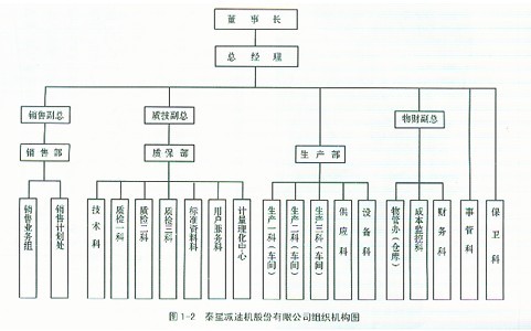 Ⅰ豐碩成果 坐落在中國蘇中平原的泰星減速機(jī)股份有限公司從1984年建廠,經(jīng)過20多年的拼搏發(fā)展,取得了驕人的業(yè)績,創(chuàng)造了許多令人難以置信的奇跡。 從當(dāng)初無資金、無設(shè)備、無產(chǎn)品、無市場的一窮二白、資不抵債的作坊式小廠發(fā)展成為現(xiàn)擁有固定資產(chǎn)3.8億元,員工2500多人,其中一程技術(shù)人員586人,占地68萬平方米的中國最大的減速機(jī)制造企業(yè),成為了中國減速機(jī)的生產(chǎn)基地,泰星減速機(jī)股份有限公司。根據(jù)2003年中國機(jī)械500強(qiáng)的排序,名列全國減速機(jī)行業(yè)榜首。 公司生產(chǎn)減速機(jī)不僅產(chǎn)量最高,銷量也最大。2004年,公司的銷售收入為5.5億元,主要產(chǎn)品的市場占有率高達(dá)25%,已經(jīng)連續(xù)11年名列全國同行首位。 20年前公司為社會創(chuàng)造了33億4千多萬元的財富,向國家交納了近4億元的稅金。 公司的產(chǎn)品遍布全國各地,并已走向德國、日本、美國等機(jī)械強(qiáng)國,國家的重點(diǎn)工程項(xiàng)目,從三峽水利工程,江陰長江大橋建設(shè)工程,黃河小浪底工程,葛洲壩工程,西氣東輸工程到南水北調(diào)工程等都在使用泰星的產(chǎn)品。 泰星減速機(jī)股份有限公司組織機(jī)構(gòu)圖見圖1-2。在公司目前的2500多名員工中,有50%為當(dāng)?shù)剞r(nóng)民,大專以上學(xué)歷的僅占20%,其余的皆為初、高中以下學(xué)歷,但他們卻生產(chǎn)出了國內(nèi)領(lǐng)先、國際一流的產(chǎn)品。 泰星牌減速機(jī)成為中國減速機(jī)行業(yè)惟一的國家“121”重點(diǎn)保護(hù)名優(yōu)產(chǎn)品。