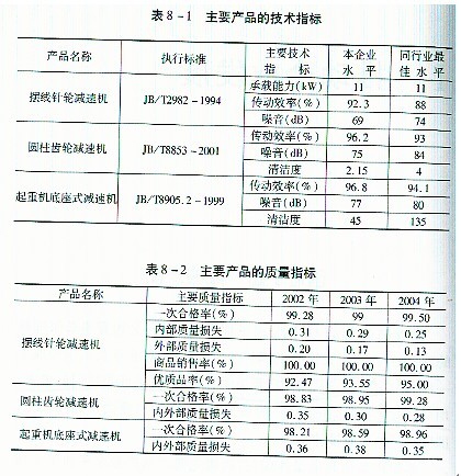 泰星產(chǎn)品的高質(zhì)量體現(xiàn)在:代表主要產(chǎn)品質(zhì)量水平的主要技術(shù)指標(biāo)遠(yuǎn)遠(yuǎn)超過了同行業(yè)的最佳水平。見表8—1。
