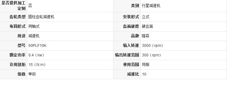 隆森機電專業(yè)生產(chǎn)精密行星減速機PLF60-10K