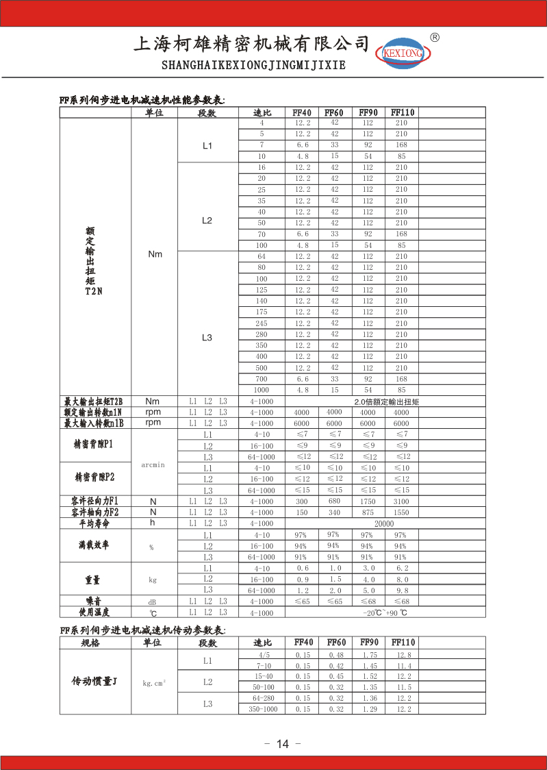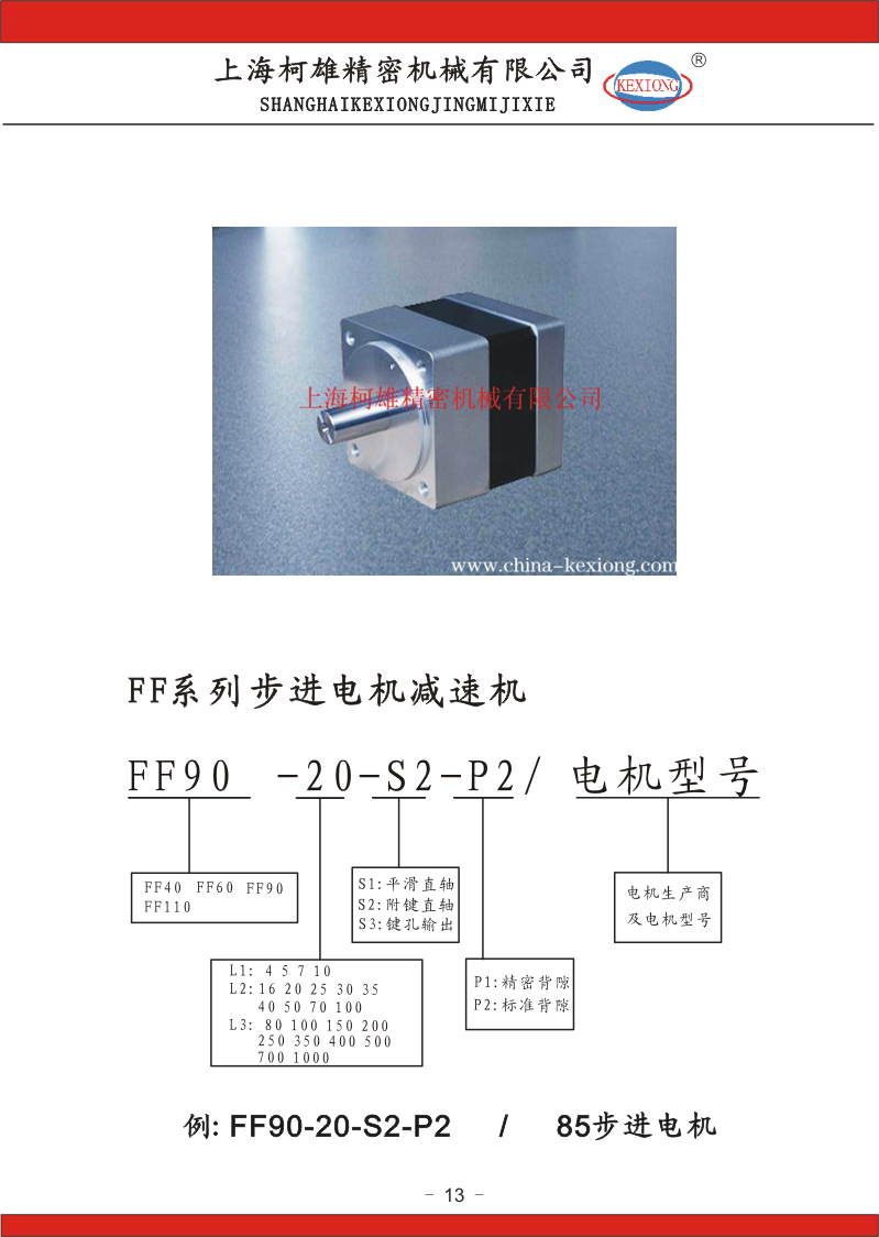 FF系列步進電機減速機:FF40、FF60、FF90、FF110、同軸式機座型號,速比:3-1000有20多個比速可選擇;分一、二、三級減速傳動;精度:一級傳動精度在8-10弧分,二級傳動精度在6-8弧分,三級傳動精度7-10弧分;等一千多種規(guī)格。