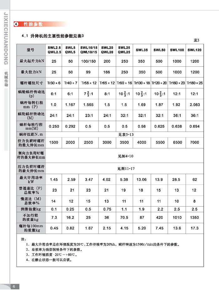 QWL系列蝸輪絲桿升降機是一種基礎(chǔ)起重部件,已列為JB/ZQ4391-86標(biāo)準(zhǔn)。承載能力2.5-120T。具有結(jié)構(gòu)緊湊,體積小,重量輕,動力源廣泛。無噪音,安裝方便,使用靈活,功能多。配套形式多,可靠性高,使用壽命長等許多優(yōu)點。具有提升、降落、推進、翻轉(zhuǎn)等多種功能?蓡闻_也可組合使用,可能用電動機或其他動力直接帶動,也可手動。有不同的結(jié)構(gòu)型式和裝配方式,提升高度可按用戶的要求制造,該裝置可以自鎖。